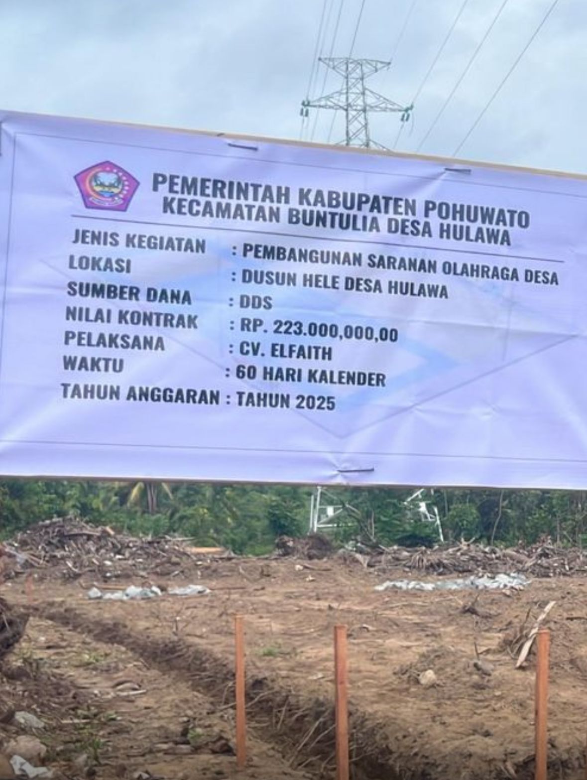 SAMUDRANEWS.ID – Proyek pembangunan sarana olahraga desa di Dusun Hele, Desa Hulawa, yang dibiayai melalui Dana Desa (DDS) Tahun Anggaran 2025 senilai Rp223.000.000 hingga kini belum juga rampung. Padahal masa pekerjaan proyek tersebut telah lama berakhir.